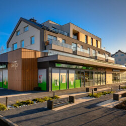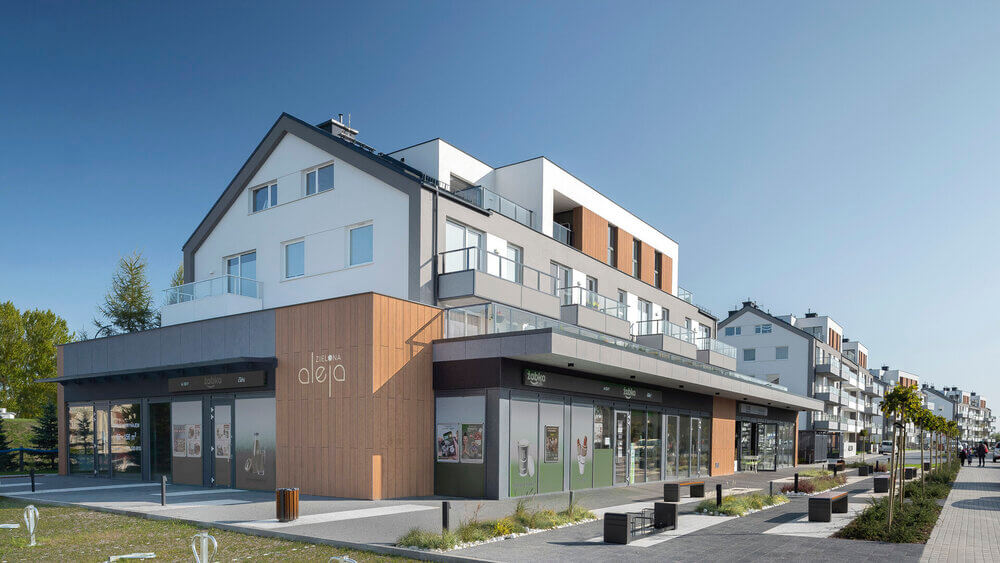 W parterze budynku znajdują się lokale usługowe.